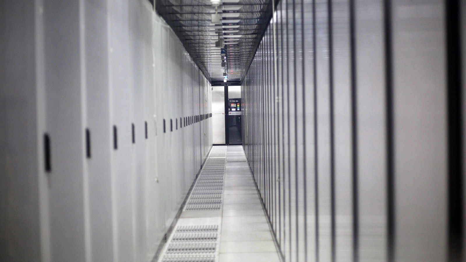 The computing area is divided into alternating hot and cold aisles. In the cold aisles, where the fronts of the server racks face each other, thick water pipelines, visible beneath the raised floorboard, actively chill the air. Inside the locked racks, behind mesh doors, thousands of tiny blinking lights and thick bundles of fibre-optic cables are the only visible signs of the mammoth computing power inside. Step to the back of these rows, and the heat hits you like a physical wall.
